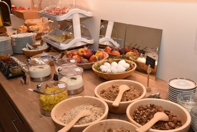 La nostra ricca colazione a buffet vi delizierà con piatti tipici della regione e molti prodotti della nostra fattoria, come marmellate fatte in casa, torte, pane, muesli, yogurt, succhi di frutta, uova delle nostre galline ruspanti e latte delle nostre mucche.